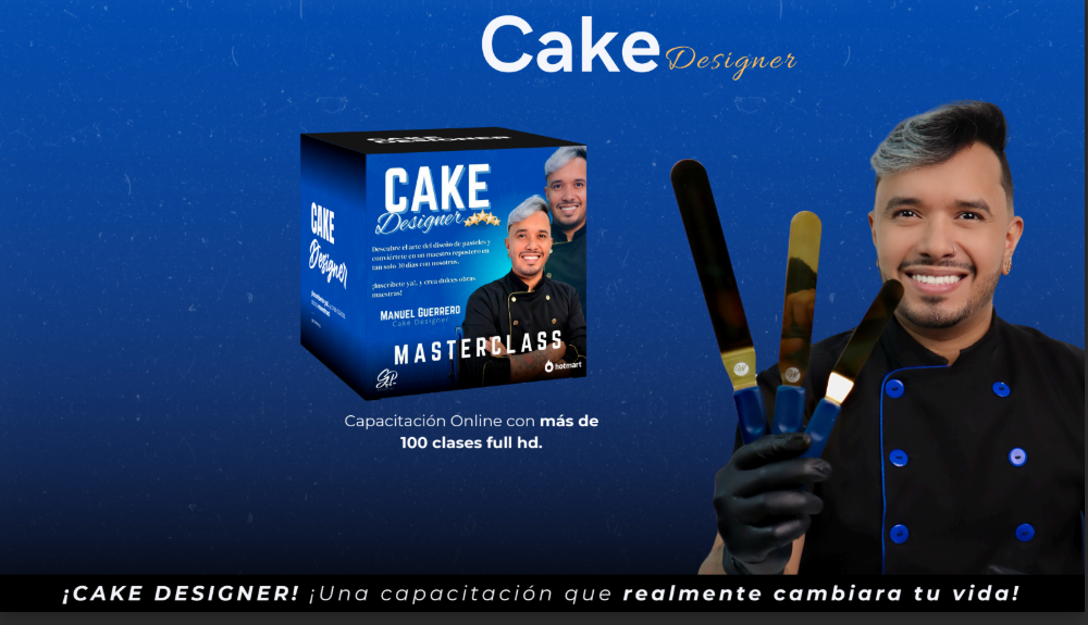 Con el curso online Cake Designer, podrás dominar el arte del diseño de pasteles desde cero y convertir esa pasión en un negocio rentable. Este programa te enseña paso a paso las mejores técnicas de repostería moderna para elaborar tortas, cupcakes, brownies y más, sin necesidad de experiencia previa. En solo 30 días, podrás sentirte orgulloso de cada creación y comenzar a generar ingresos desde casa con la guía del reconocido pastelero Manuel Guerrero.