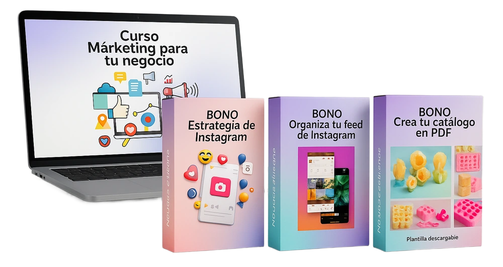 • Bonos prácticos como marketing, empaquetado, estrategias de precios y catálogo.